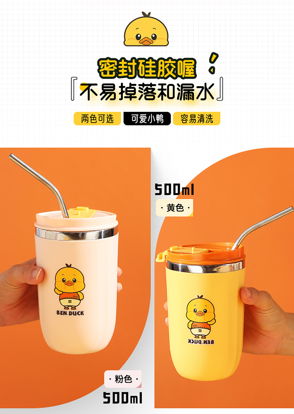 450ml笨鴨304不銹鋼翻扣保溫杯