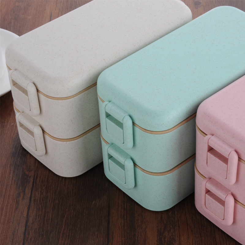 麥秸雙層扣防溢便當(dāng)盒(800ml)