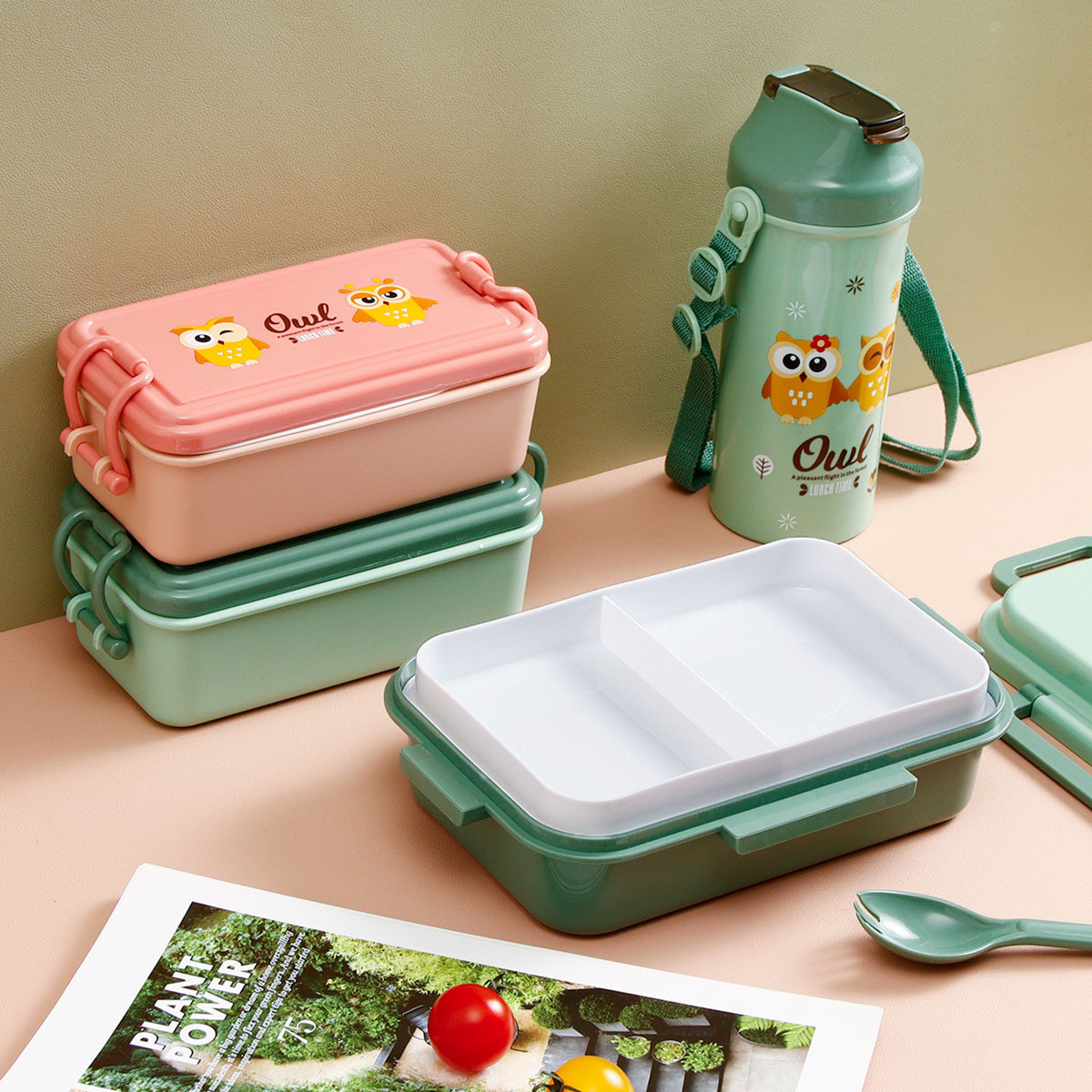 WXA-B0202(四扣便當盒+水壺):225*155*65mm/90*190mm