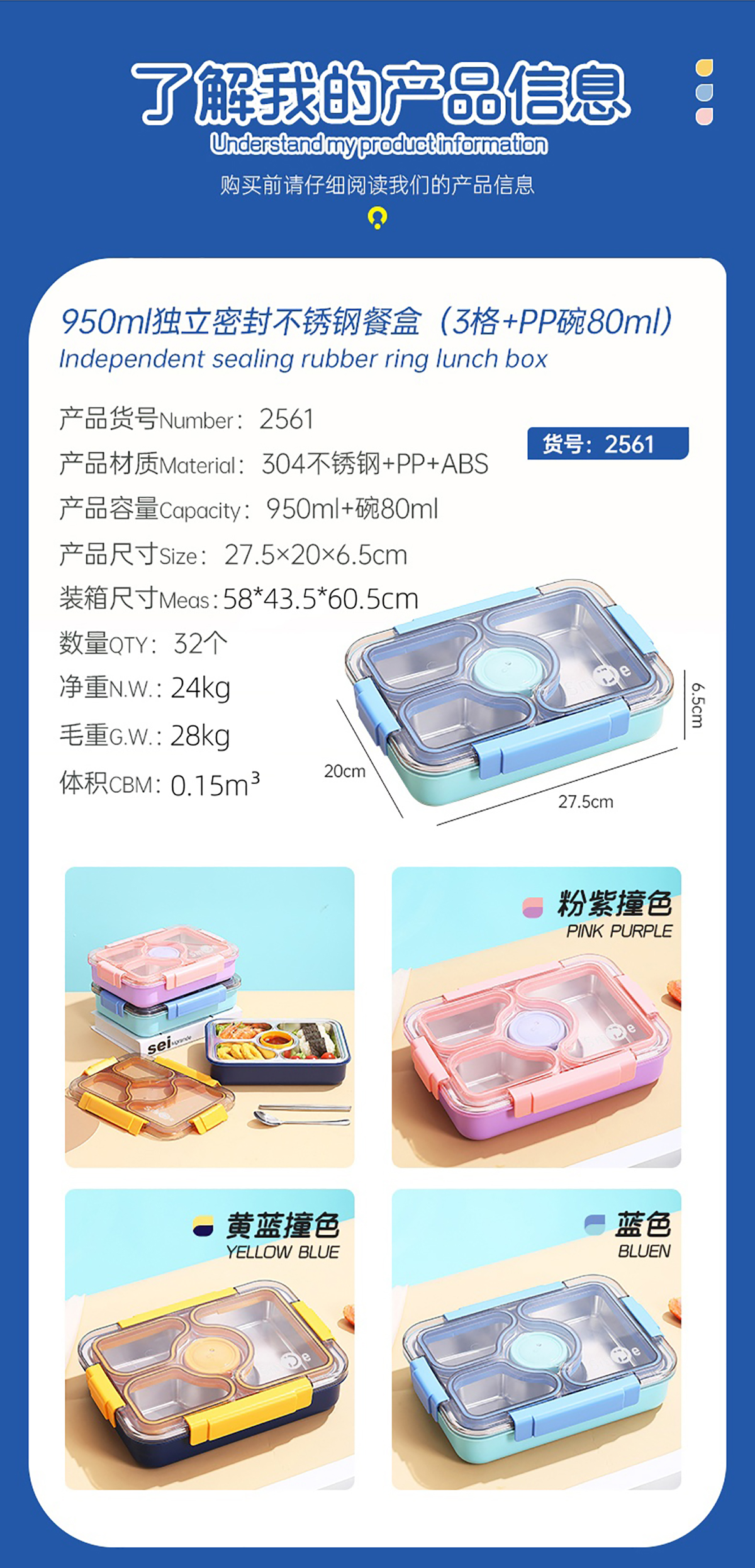 Stuff:304不銹鋼+PP+ABS/彩盒