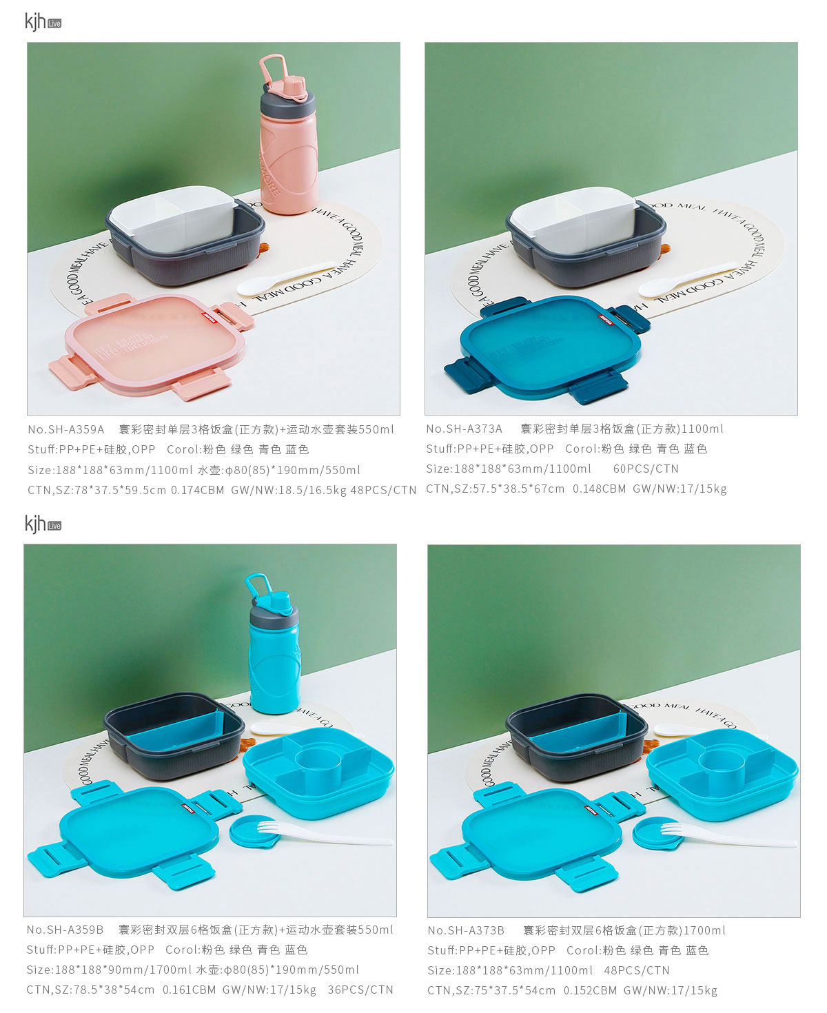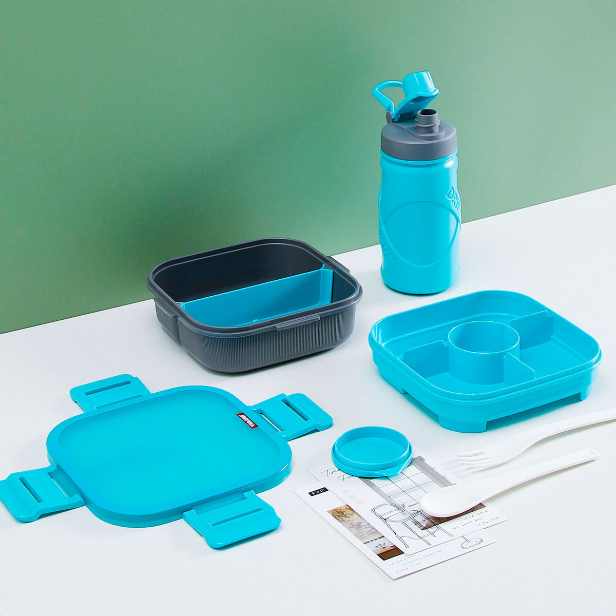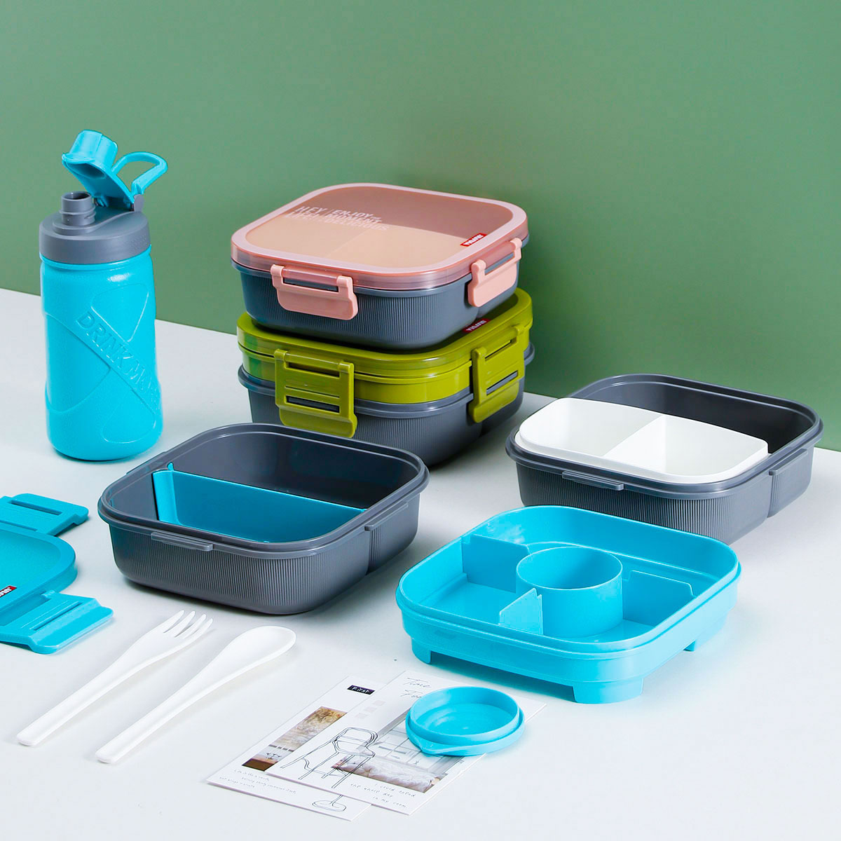 寰彩密封單層3格/雙層6格飯盒(正方款)+運(yùn)動水壺套裝/單個