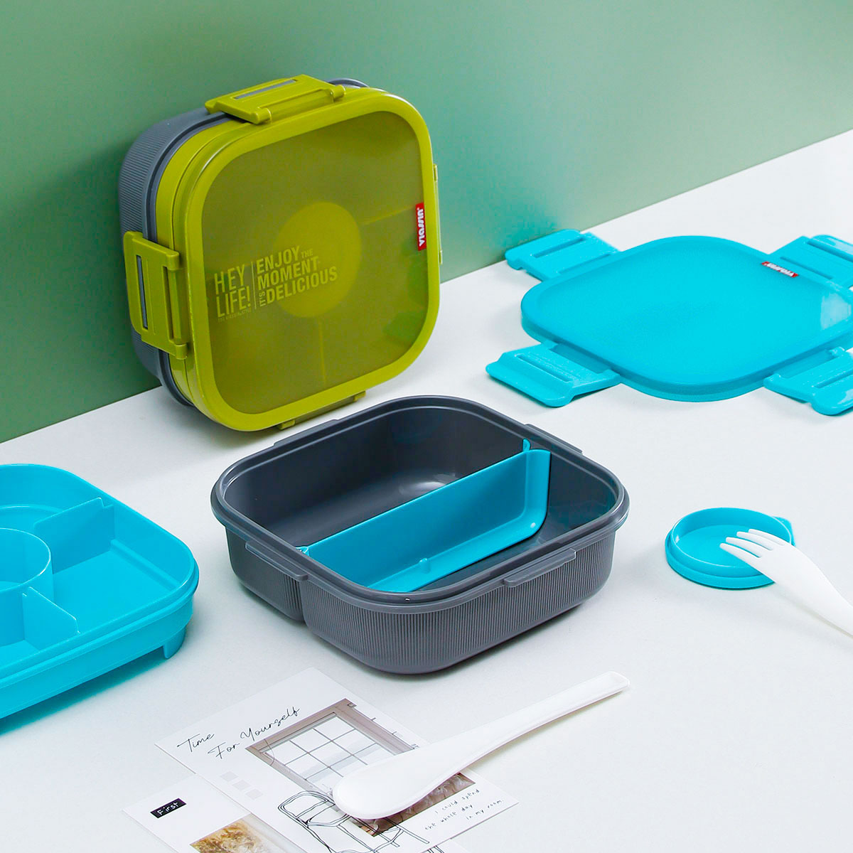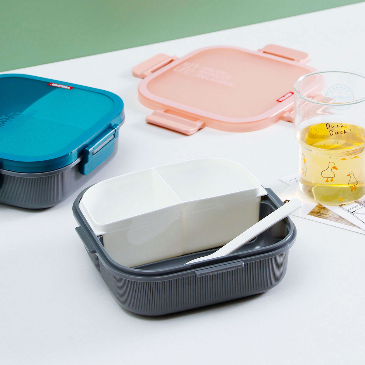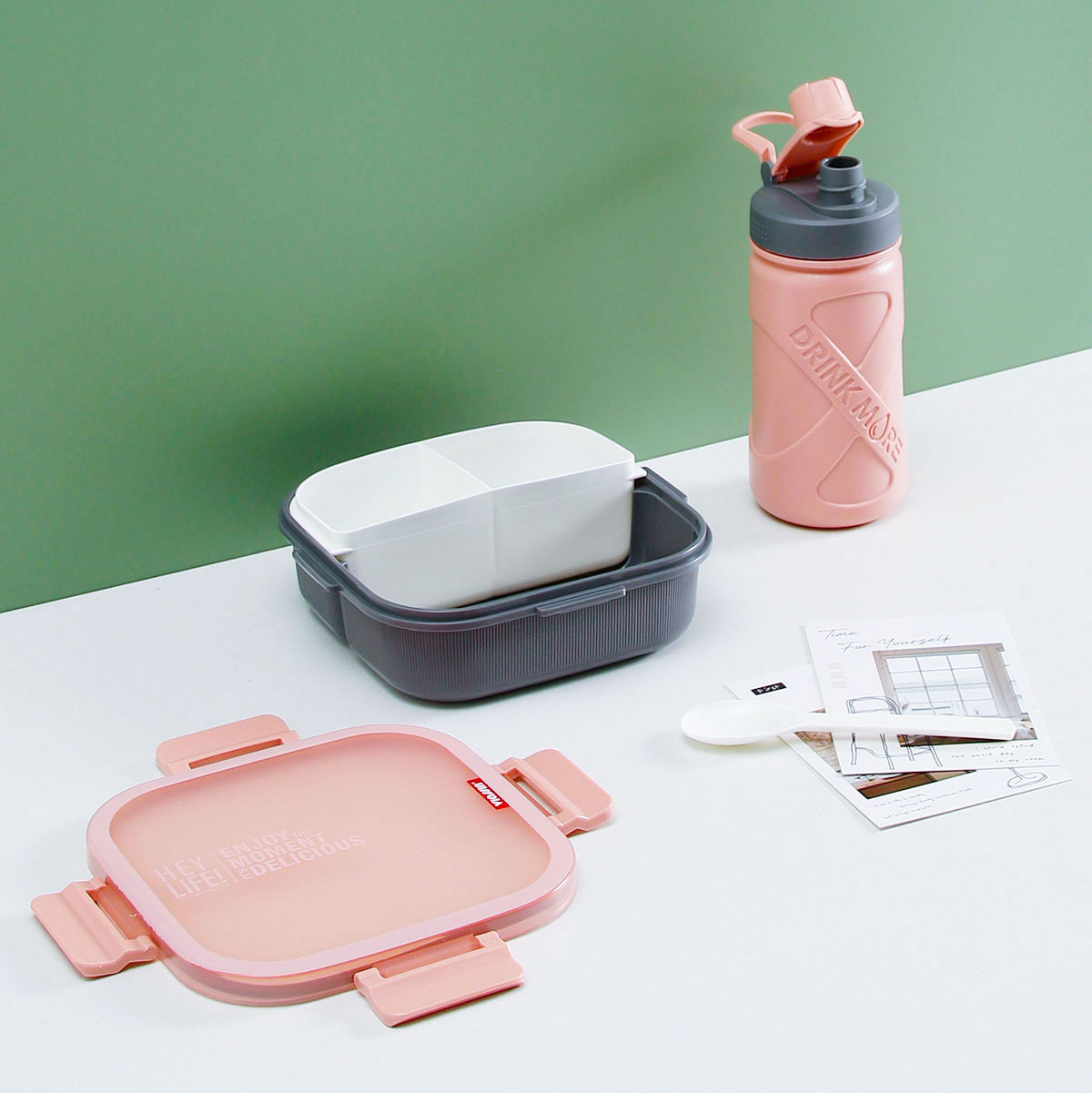 寰彩密封單層3格/雙層6格飯盒(正方款)+運(yùn)動水壺套裝/單個