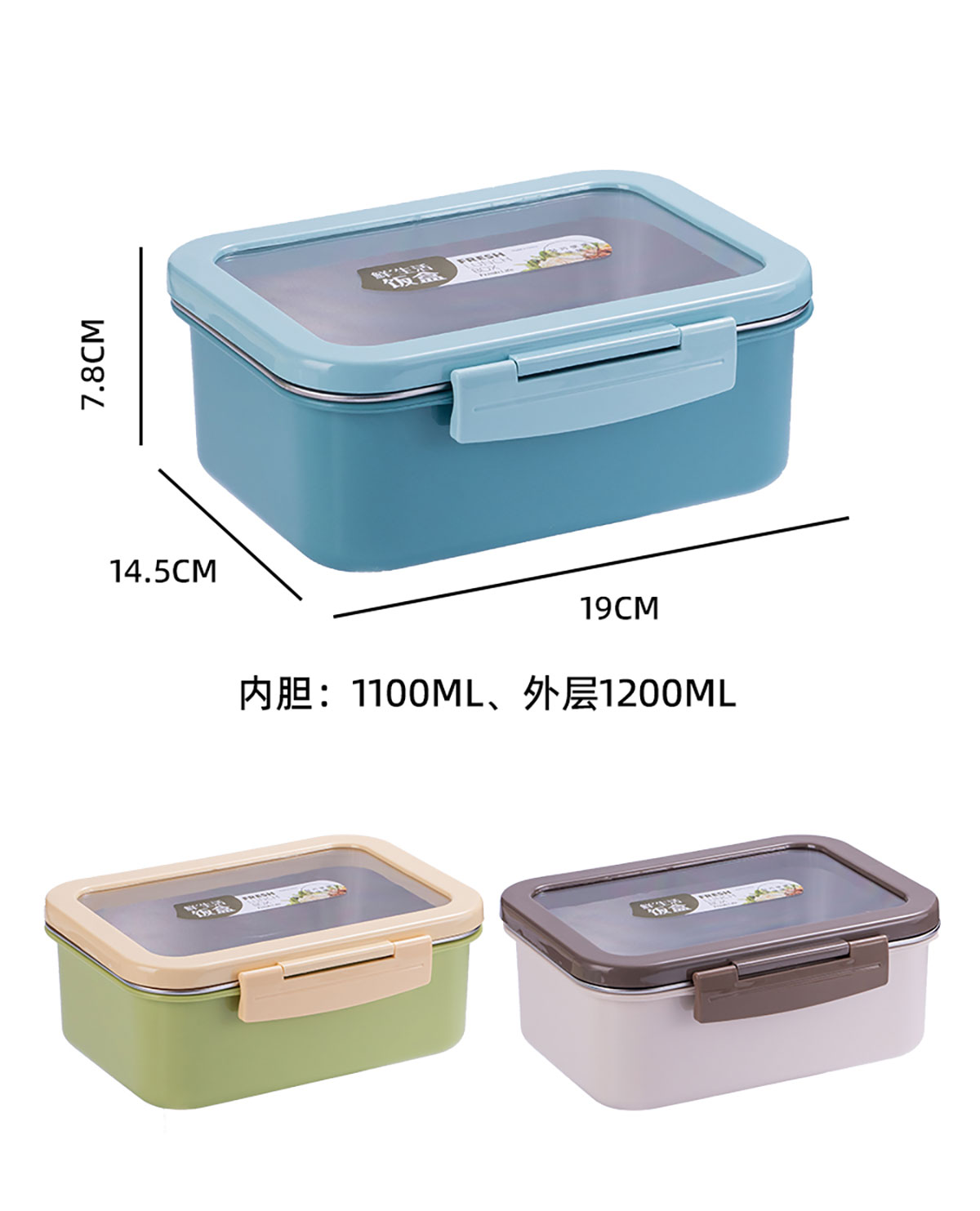 Size: 190*145*78mm/外層:1200ml 內(nèi)膽:1000ml