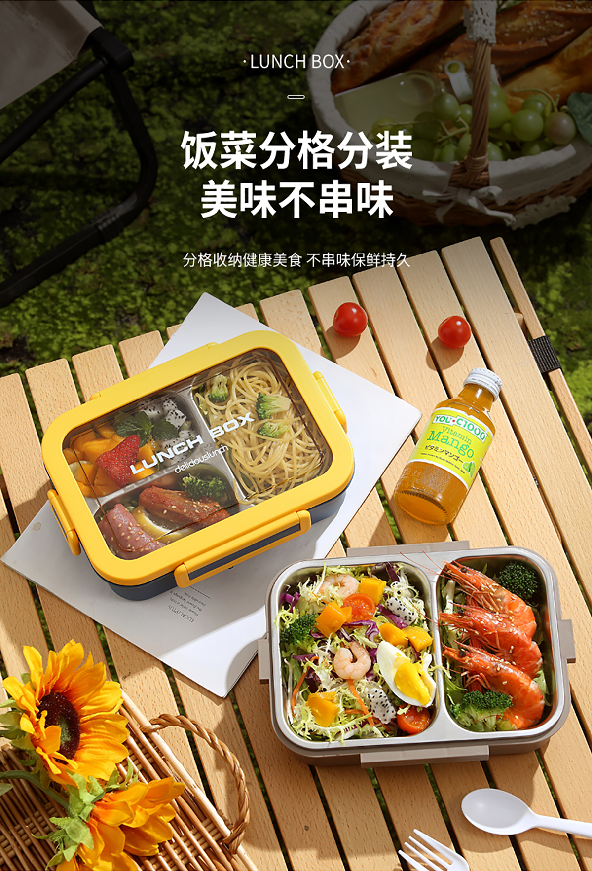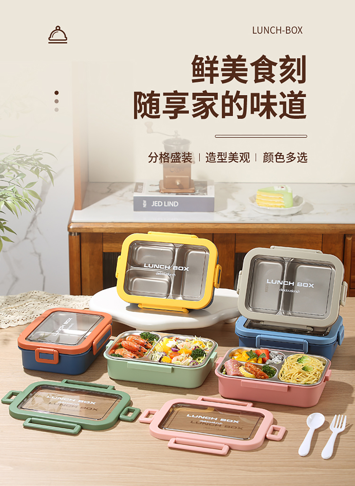 簡約分格不銹鋼飯盒兩格/三格款