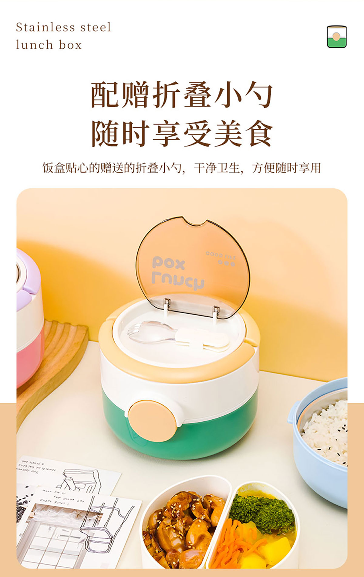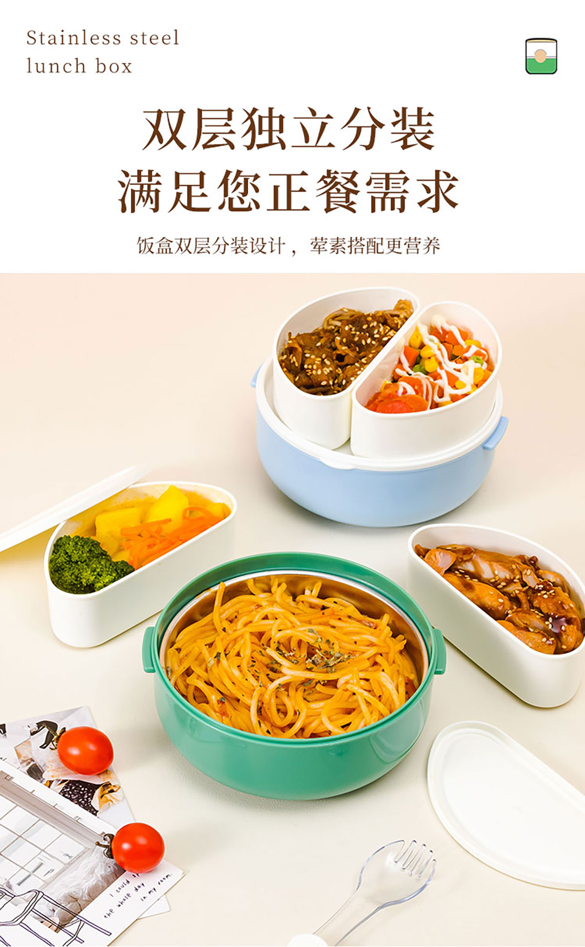 圓形疊趣雙格不銹鋼款/PP款餐盒