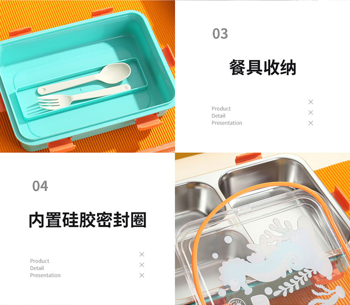 LX-7203(四格帶碗):254*182*65mm/850ml+不銹鋼湯碗150ml