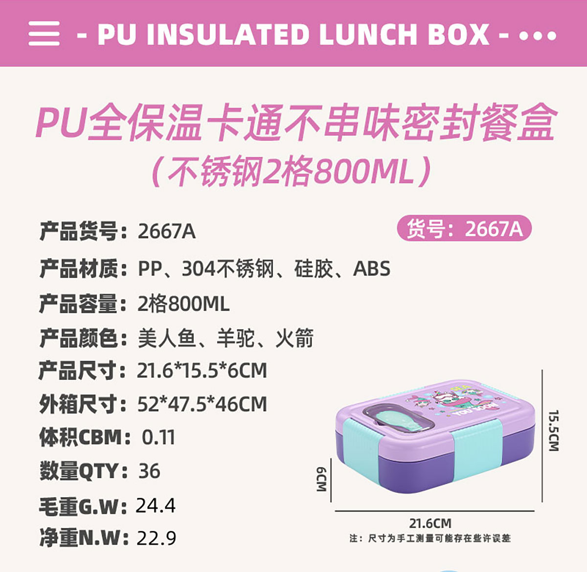 Size: AQX-2666A(3格):216*155*60mm/750ml AQX-2667A(2格):216*155*60mm/800ml