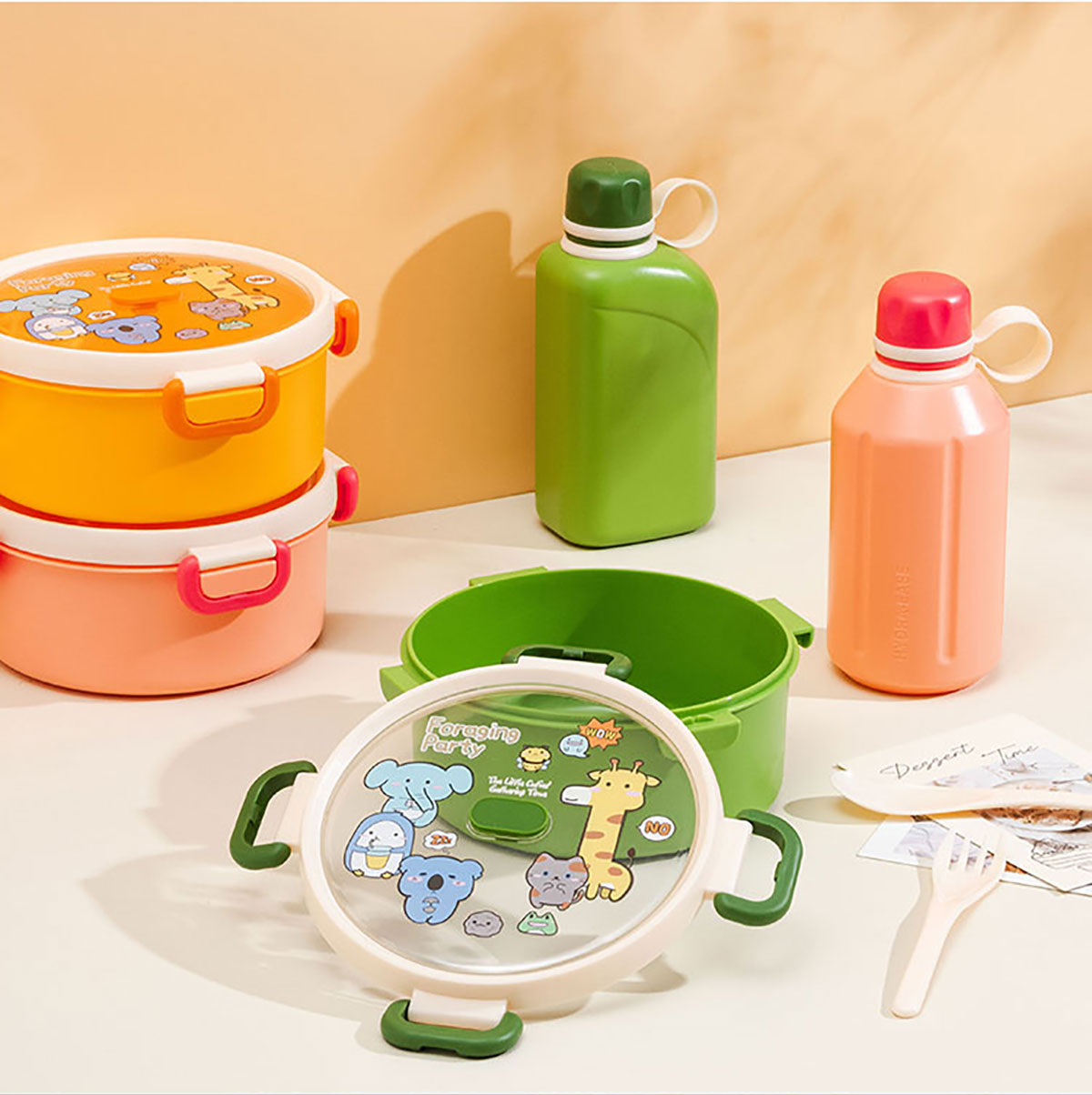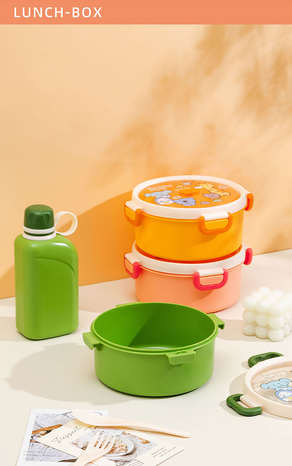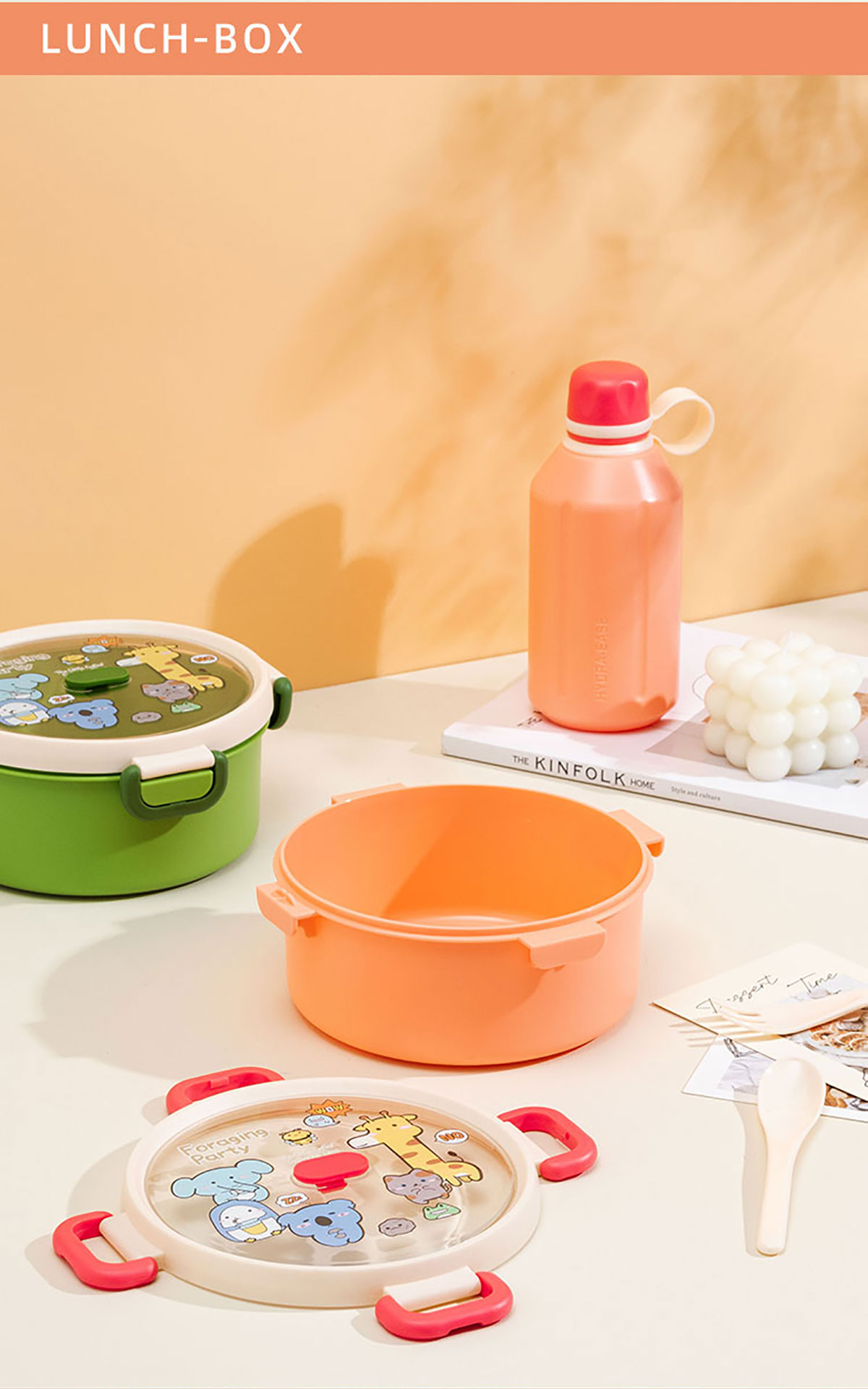 尚趣圓形單層飯盒(1000ml)/+圓形/方形運(yùn)動水壺(500ml)
