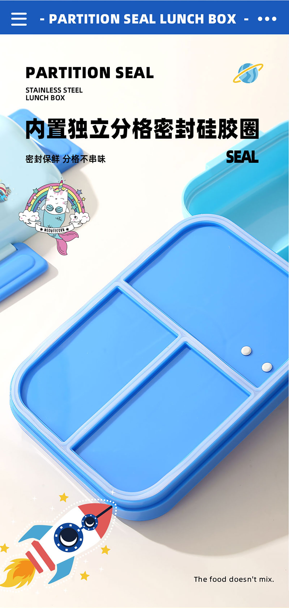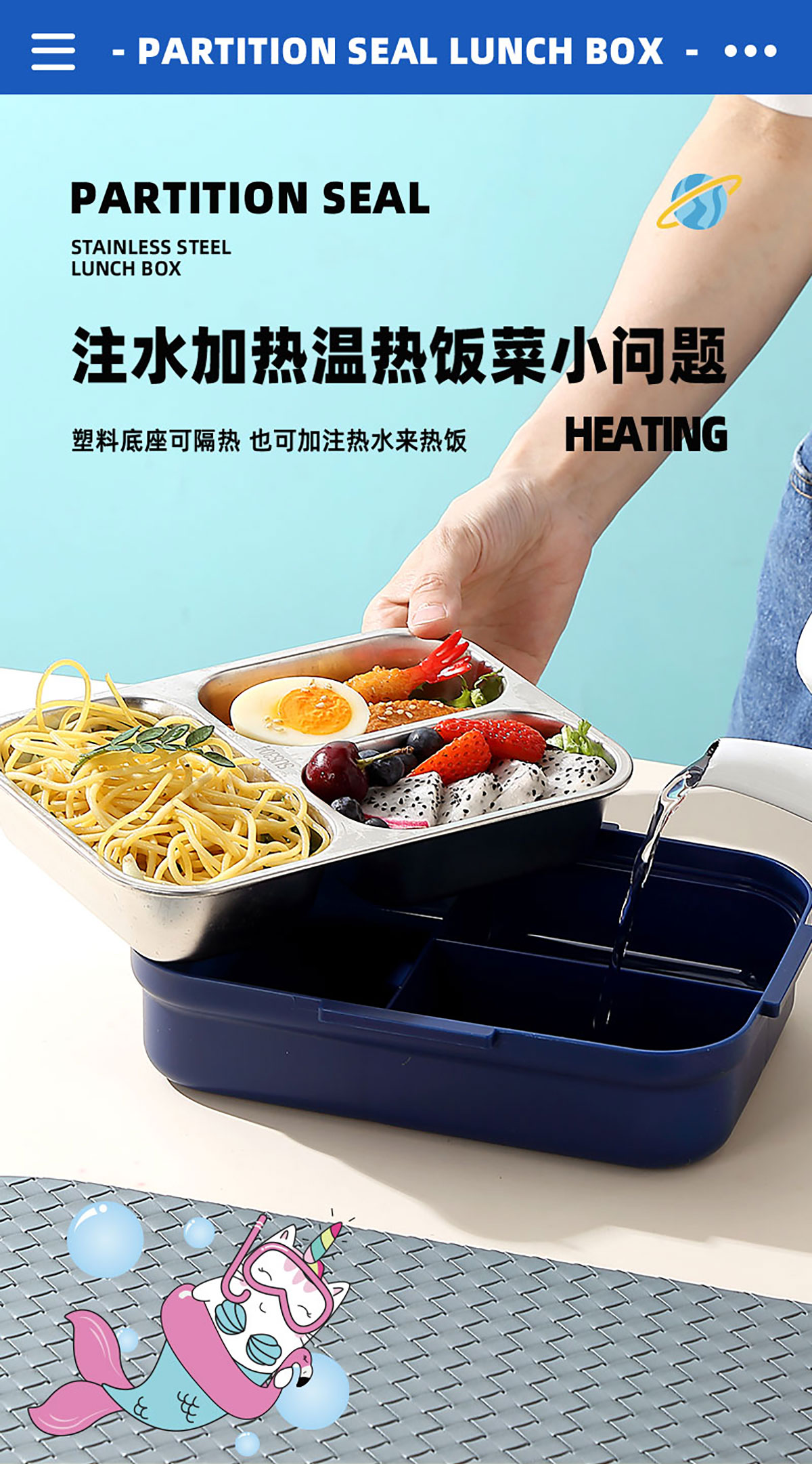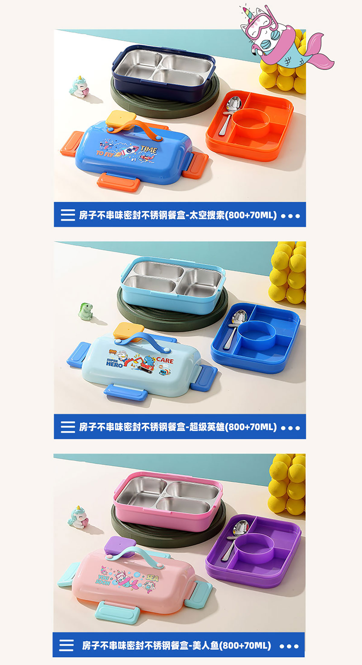 HOUSE房子不串味密封不銹鋼餐盒(長方形3格800ml+碗70ml+不銹鋼勺)