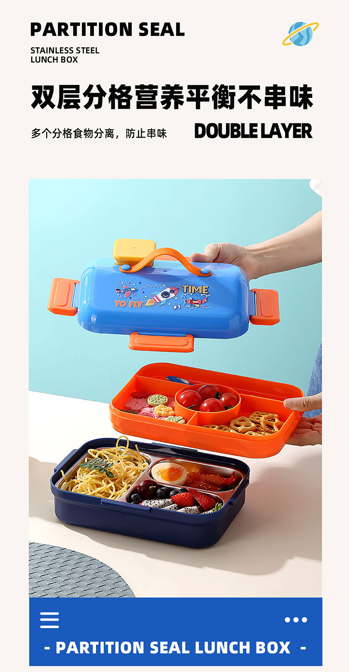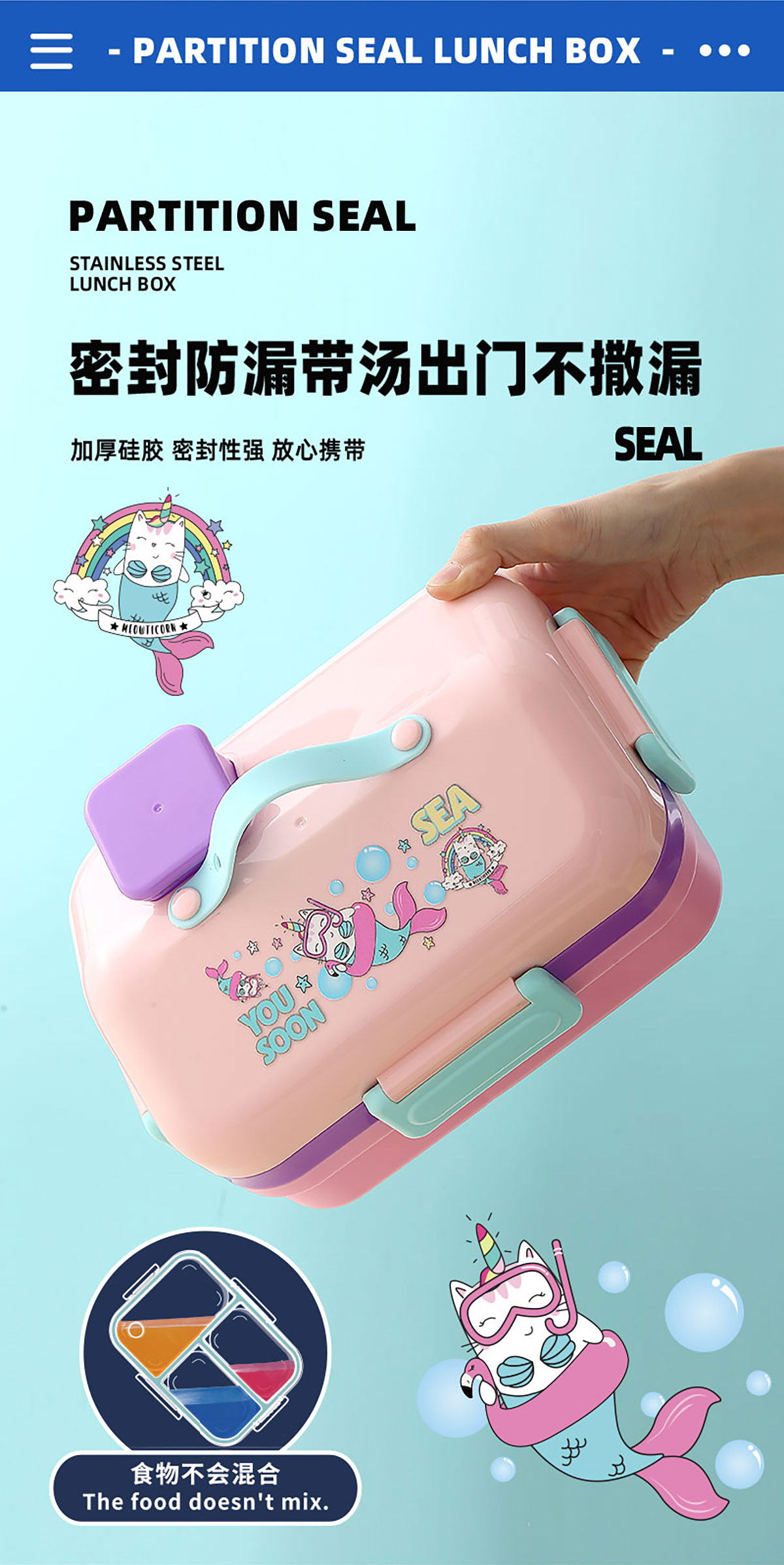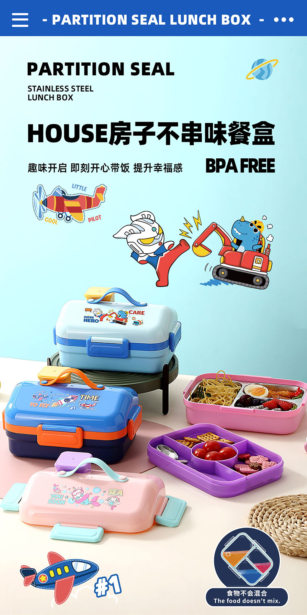 HOUSE房子不串味密封不銹鋼餐盒(長方形3格800ml+碗70ml+不銹鋼勺)